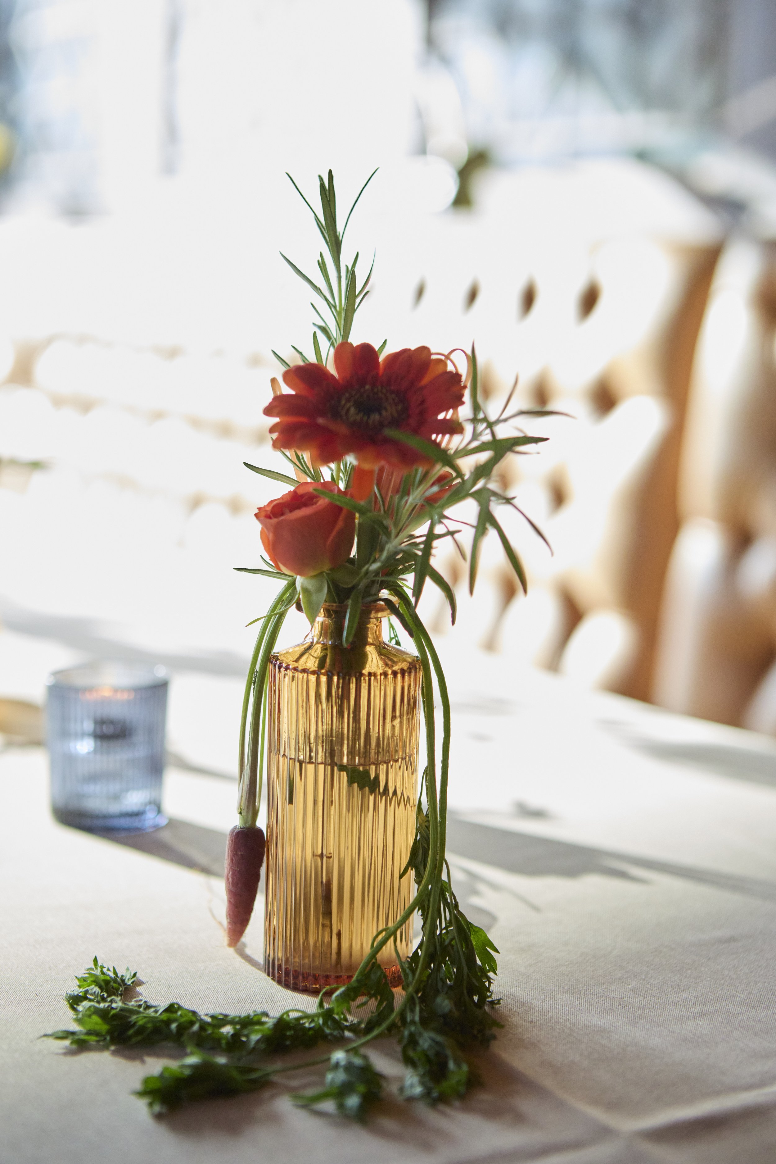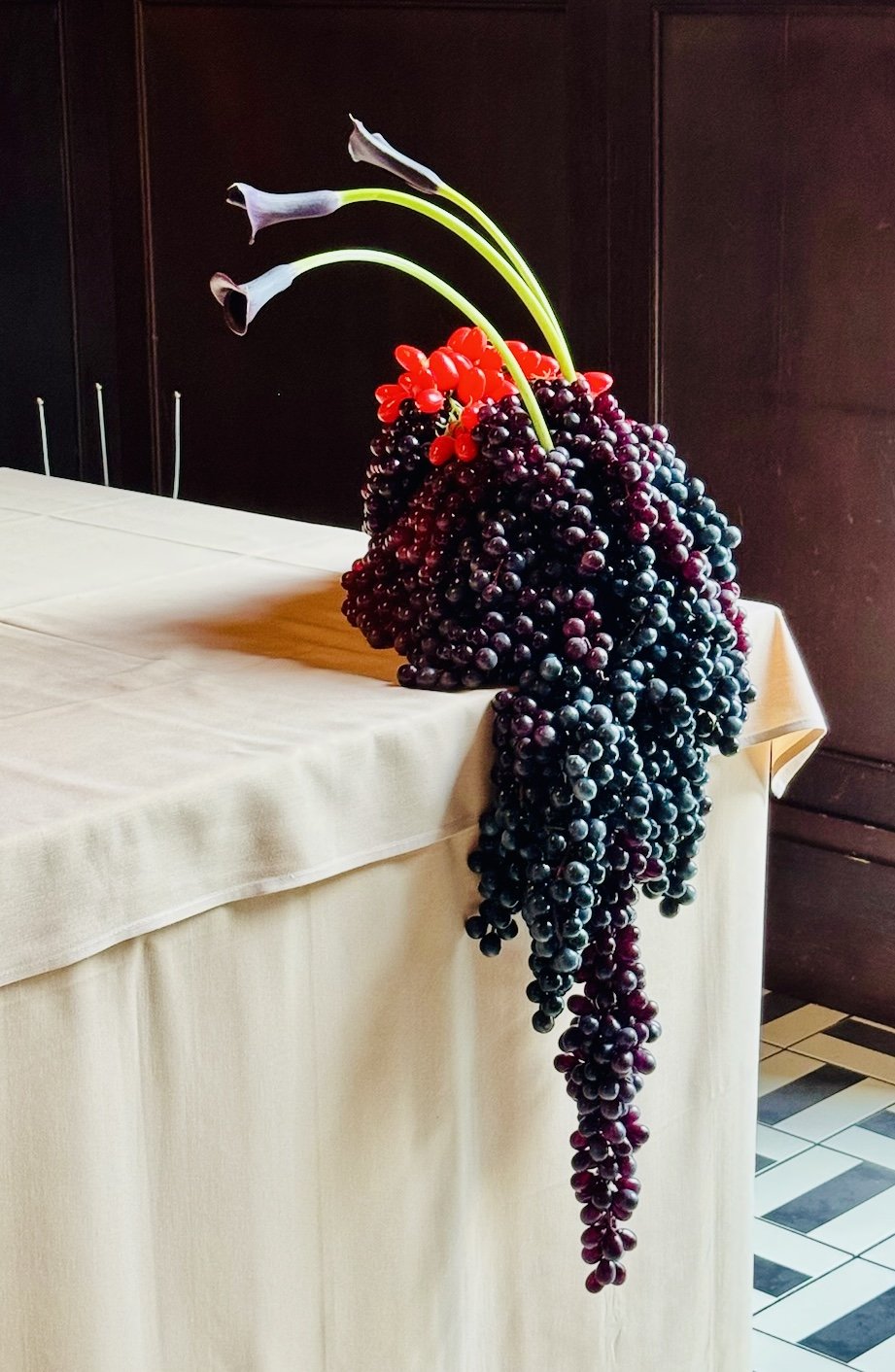 Bacchanal inspired wedding at EATALY downtown NYC. The couple requested their favorite fruits, vegetables and herbs be incorporated into the tablescapes giving a food forward feel.